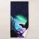 El Aurora Boreal. Un lobo aullando en el silencio de la noche. La escena es a la vez dramática y hermosa, lo que la convierte en una obra de arte mágica.