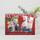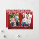 Tarjeta de felicitación de familia de Navidad elegante y encantadora. Cuenta con ramas de pino blancas sobre un fondo rojo, dos fotos y caligrafía moderna "aferrarse a la magia" sobre una superposición para que sea visible en cada foto, sin importar los colores. Utilice la herramienta Personalizar para agregar su información. Más ideas en mi Colección de Navidad Charm.