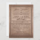Esta hermosa invitación a la boda de 5"x7" marrón cacao claro, con un texto marrón chocolate, tiene un ambiente vintage y anticuado con el diseño de cartas antiguas, con detalles elementos de escritura, una pancarta decorativa, estrellas y una mordaz banda. La elegante invitación se inspira en el diseño vintage y en posters elegantes. El texto dice: "Te invitan a la recepción nupcial de [nombre del personalizable] y [nombre del personalizable] [fecha del personalizable] [hora del personalizable]. Por favor, Únete a nosotros para una celebración inolvidable". Personaliza aún más la invitación con la información y dirección de la recepción, en la caja con borde punteado. Esta invitación es perfecta para todo aquel que busque invitaciones caseras extravagantes, históricas, vintage o únicas en recepción.