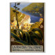 Hermoso afiche de viajes creado alrededor de 1920 por Mario Borgoni mostrando la costa desde una terraza con vistas a la Riviera italiana en Portofino. Imagen disponible en varios regalos y productos.