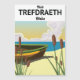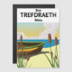 Cartel de viaje en la playa y barco pesquero de Trefdraeth Gales.