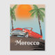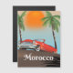 Marruecos Hermoso arte de afiches de viaje en auto vintage rojo.