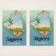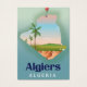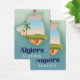 Afiche de viaje del Mapa Argelino con un mapa de la Nación Africana y un hermoso viejo avión de apoyo.