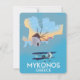 Afiche de viaje del Mapa de Grecia de Mykonos