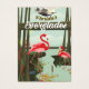 Afiche de viaje del personalizado de Florida Everglades con aves paisajistas y flamingo.