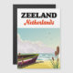 Cartel de viaje en la playa de los Países Bajos Zeeland en un estilo vintage.