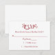 Esta simple tarjeta RSVP, coincide con nuestra tarjeta de detalles e invitaciones para la boda. Crea una impresionante invitación a la boda con este conjunto que puedes personalizar como quieras. ******************************************************** Por favor siga estos pasos fáciles para personalizar de su invitación: 1. Haga clic en el botón "Personalizar" de la derecha del producto para ver cómo se ve su información en este elemento. Si desea más personalizar de los tipos de letra, los colores de las fuentes y los colores de fondo, haga clic en "Haga clic para Personalizar más adelante" en la parte inferior de la sección de personalización. 2. Antes de realizar el pedido, observe las opciones de forma y papel para asegurarse de que ha elegido la mejor selección para su artículo. 3. Póngase en contacto conmigo si necesita hacer coincidir elementos o personalizaciones más complejas con cualquiera de mis invitaciones.