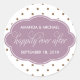 Perfecto para los favores matrimoniales, los bufés de caramelos y los sellos para sobres, estos pegatinas cuentan con la frase "felizmente para siempre" en un fondo punteado, y pueden ser personalizados con sus nombres y fechas.