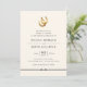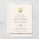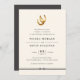 La invitación a una boda rústica incluye letras marrones de ciruela oscura con en bloque de moda y cursiva, con un par de herraduras de acuarela dorada en la parte superior. La cuerda con nudos que se detalla a lo largo de la parte inferior completa el aspecto. Recomendamos el papel de Artisan Felt Ecru para una textura rústica de lujo y un acabado crema cálida.