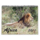 calendario 2011 que ofrece 15 animales africanos que sorprenden en sus ajustes salvajes naturales. Incluye el león, la cebra, el guepardo, la jirafa, el elefante, el flamenco y más.