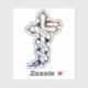 Cruz blanca con Agape escrito en letras griegas y en inglés con fondo arcoiris.