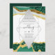 *** Invitación de boda con aspecto brillante de ágata dorada esmeralda verde con CAMPOS DE PLANTILLA DE TEXTO EN AMBOS LADOS para que puedas agregar detalles adicionales como rsvp, direcciones, registro de regalos, etc. *** PREGUNTAS FRECUENTES: Accede al DISEÑADOR EN VIVO GRATUITO de Zazzle para ediciones personalizadas y artículos coincidentes y utiliza la opción TRANSFERIR para ver este diseño en una variedad de tipos, tamaños y texturas de tarjetas/papel. *** UTILIZA LAS HERRAMIENTAS DE PERSONALIZACIÓN para agregar gráficos, fotos, códigos de escaneo qr, mapas y otros elementos que puedas encontrar útiles para tu artículo de evento.
