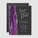 Esta elegante y moderna tarjeta de imán de fecha guarda un borde de agate color morado con un falso purpurina de plata. El texto del personalizable es gris plateado claro sobre un fondo negro de pizarra.