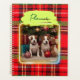 温かみのあるクリスマスチェック柄とジャックラッセルテリアの子犬が2匹