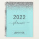 2022 Plata y Azul Teal Aqua Brillante Glitter Monograma Nombre o Inicial Planificador de Calendario Cuaderno en espiral. Esto hace el regalo perfecto para cumpleaños 16, boda, despedida de soltera, aniversario, baby shower o fiesta de soltera para alguien que ama el glamour de lujo y estilos chic.