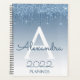 2022 Planificador de Cuaderno en Espiral con Monograma y Nombre de Brillo Azul Goteando. Esto hace el regalo perfecto para cumpleaños dulces 16, boda, despedida de soltera, aniversario, baby shower o fiesta de soltera para alguien que ama el lujo glamuroso y los estilos chic.