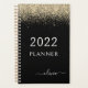 2022 Cuaderno Espiral de Monograma con Nombre e Inicial Dorado y Negro Brillante Glitter. Esto hace el regalo perfecto para cumpleaños de dulces 16, boda, despedida de soltera, aniversario, baby shower o fiesta de soltera para alguien que ama el glamour de lujo y los estilos chic.