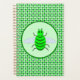 Este impresionante planificador presenta una imagen gráfica de una linda abeja verde con rayas verdes claras y oscuras y antenas verdes. Este lindo y pequeño abejorro está listo para celebrar el Día de San Patrón. La abeja está rodeada por un patrón de rocas de color verde claro y oscuro para completar el diseño.