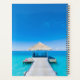 Esta foto muestra a un bañador de sol en el muelle de un complejo de villas náuticas en la isla de las Maldivas.
