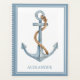 Este hermoso planificador de calendario inspirado en la costa presenta anclas náuticas vintage con cuerda en tonos suaves de azul y marrón. Personaliza tu elección de nombre y texto especial en cada lado.