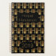 Año personalizado 2019, Nombre personalizado Harper Henderson, Monograma dorado negro H Elegante Planificador inicial de patrones, Añadir nombre y año, Planificador mensual semanal