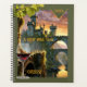 Planner con una escena fantástica con una copa de vino, uvas y un castillo al atardecer. Hermoso para cualquiera que ame el vino.