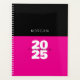 Personaliza este planificador rosa negro y caliente con tu nombre, título y año con información de contacto y texto extra en la parte posterior. Texto en blanco y negro.