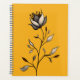 Elegante planificador de flores con una obra de arte abstracta en colores cálidos amarillos, grises y negros dibujados con tinta digital.