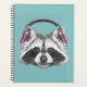 Este diseño presenta un lindo mapache con auriculares rosas.