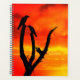 Este planificador tiene una bonito de pájaros encaramados en un árbol con una hermosa puesta de sol al fondo.