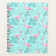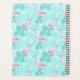 Flamingo rosa tropical retro de las hermosas aves tropicales repetidas con un fondo azul claro y frondas de palmeras.