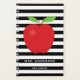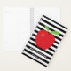 Este planificador presenta un diseño para un profesor. El fondo es un diseño de rayas horizontales en blanco y negro con un ilustracion digital de una manzana roja. El texto personalizado le permite añadir el nombre y grado del profesor.