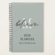 Cree Script 2024 Nombre Monograma Sage Inicial Verde. Manténgase organizado para el año que viene con este diseño inspirador con una palabra motivadora, Believe, en un guión conjunto informal colocado sobre su inicial en blanco sobre un fondo verde sabio. Personaliza con el año y tu nombre. Una salvia a juego está en la parte de atrás.