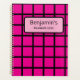 Un patrón juguetón, de inspiración vintage, con audaces cuadrados de color rosa intenso con bordes negros crudos. Este planificador se puede personalizar con cualquier nombre y año, lo que lo convierte en un regalo reflexivo o un organizador personal elegante.