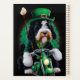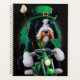 Un amigo peludo detrás de las manillares de una brillante bicicleta verde, usando un traje verde del Día del San Patricio que hace que las cabezas se vuelvan. El perro está vestido con un conjunto festivo, con una corbata verde de arco y un sombrero superior a juego que se sienta cómodos sobre su cabeza. El conjunto presenta un diseño intrincado de rocas de champú y leprechauns, lo que deja claro que este perro está listo para celebrar el Día de San Patricio con estilo.