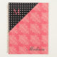 Una impresión de Damask Dots Black Girly rosa decora esta cubierta del planificador y se puede personalizar con tu nombre y inicial. Coincidiendo. Ver nuestra línea completa de productos en nuestra tienda Zazzle.