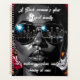 A double sided planner with inspirational quotes about a black woman's glow that depicts an African-American woman wearing sunglasses that reflect the city's skyline. She is standing against a wall full of graffiti street art and the whole illustration is in black and white except the graffiti brick wall that is in color.