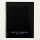 El planificador profesional presenta el nombre y el texto personalizados en el estilo de fuente serif clásico blanco en el fondo negro.