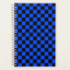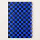 A blue and black checkerboard pattern fills the image, creating a uniform, alternating grid of squares, conveying a bold and geometric feel.