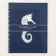 Las piezas de esta elegante suite nupcial presentan un estilo náutico clásico con un aspecto limpio y minimalista. Las olas estilísticas en tonos de agua a azul marino y un ilustracion de caballito de mar proporcionan un toque único. Un fondo azul marino con una fina tubería blanca y una gran imagen de caballito de mar, junto con tu título, nombres y fecha de boda le dan a este planificador de bodas un sorprendente aspecto moderno. Ideal para bodas de yate, barco, playa o de verano. Busque ID836 para ver este conjunto completo y otros con acentos de elementos marinos alternativos.