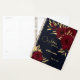 Planificador de boda azul marino elegante y chic con hermosas flores burgundy y algunas hojas doradas elegantes .