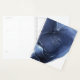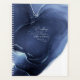 Un fondo abstracto que recuerda a la tinta líquida en tonos de azul marino profundo a cian y blanco es el telón de fondo para un texto de escritura manuscrita elegante y diseños modernos en las piezas de esta hermosa suite boda. El planificador de bodas que se muestra aquí presenta el fondo anterior con una etiqueta para mantener su nombre y un título para su libro. Buscar ID762 para ver todas las piezas de coordinación de este conjunto.