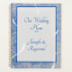 El diseño presenta un efecto de mármol azul y gris como fondo del encabezamiento, "Nuestros planes Bodas" más los nombres de novias y novios en un guión azul y elegante. Diseñado para coordinar con la "Suite Boda Monogramada de Mármol Azul y Gris".