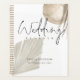 Boho Pampas Grasses Nombres Date Wedding Planner. En la parte superior derecha hay una esfera circular en tonos crema con pampas y un ventilador rústico en la parte inferior izquierda. En la parte trasera hay una crema de coordinación. Boda está en un guión de estilo manuscrito y personaliza fácilmente el resto del texto.