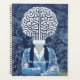 Este cuaderno dominante en azul sostiene un ilustracion de una persona con la cabeza hecha enteramente de un cerebro. ¡Es un diseño encantador para regalar al genio de la casa o de la escuela! Se puede personalizar el texto predeterminado "el genio genuino".