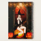 "Bruja del trono de calabaza" Una hechicera de cabello rojo adormecida se sienta en lo alto de una brillante linterna de jack-o', enmarcada por una ventana gótica abovedada y un espeluznante y encantador telón de fondo forestal. Con calabazas brillantes a sus pies y una mirada maliciosa, trae glamour oscuro a la noche de Halloween.