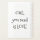 Personalizado de sketch de búho con cuerpo en forma de corazón y texto personalizado.