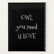 Personalizado de sketch de búho con cuerpo en forma de corazón y texto personalizado.