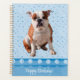 Agenda Bulldog con puntos azules feliz cumpleaños