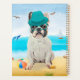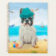 El perro lindo sentado en la playa es un regalo perfecto para alguien que ama esta raza de perro.